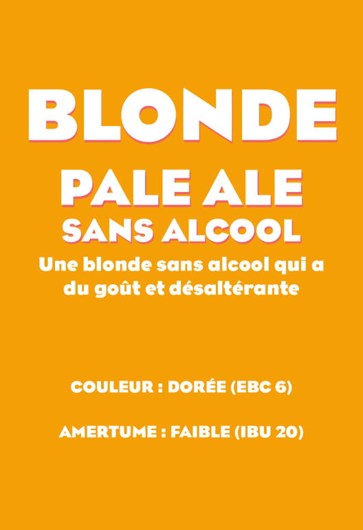 Savourez le plaisir d’une bière blonde … sans les effets de l’alcool ! Ronde et équilibrée comme notre bière blonde classique, elle saura rester légère en bouche pour vous séduire tout au long de votre dégustation. Ses notes miellées légèrement poivrées sans pour autant être trop sucrées sauront vous rendre complètement … accro !